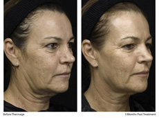在40多歲後接受Thermage電波拉皮治療﹐ 外觀上可有明顯改善,能把開始出現鬆弛的皮膚即時得到提升和收緊。